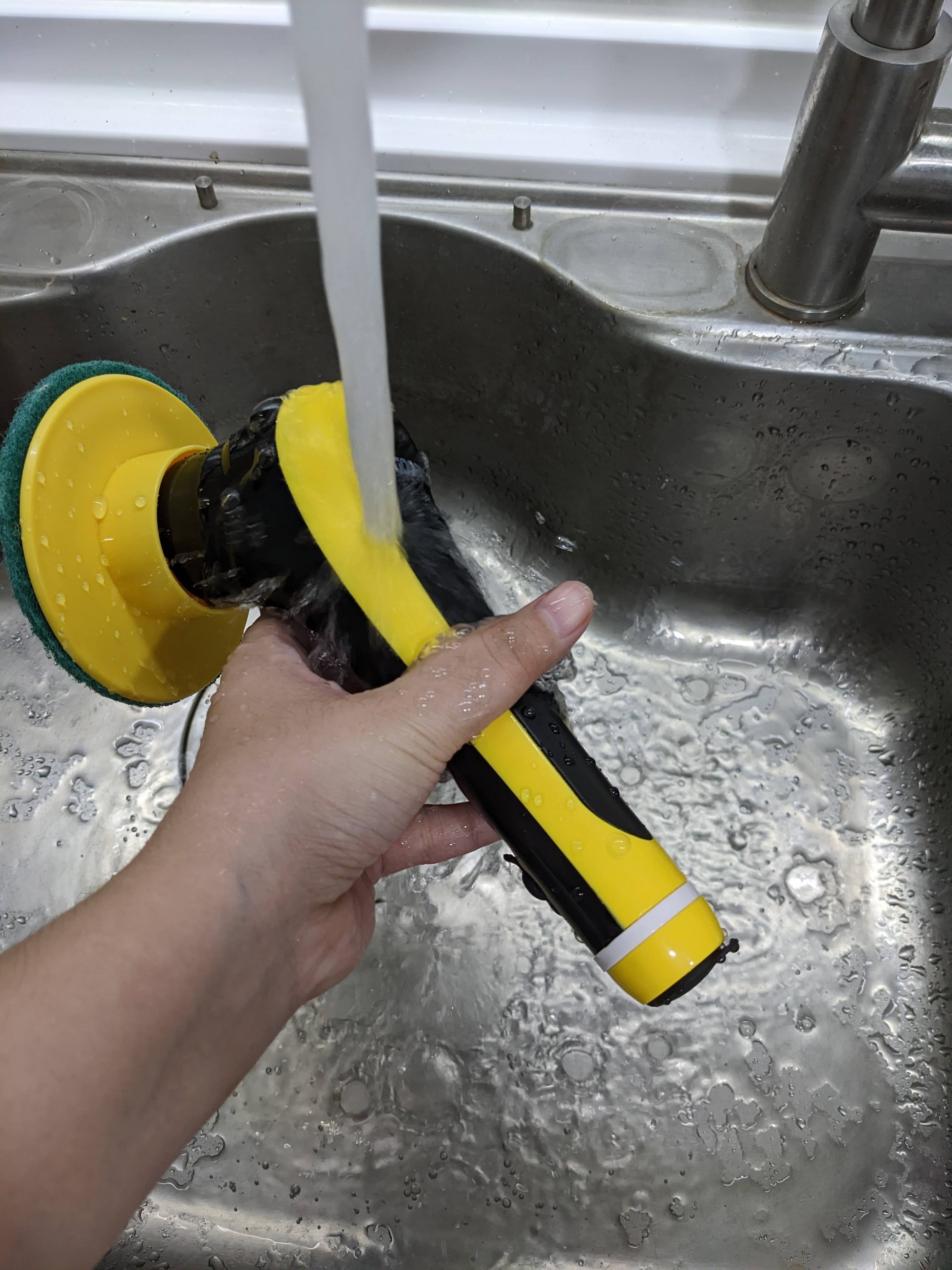GOOFINDS谷凡電動清潔刷全機防水,只要確認充電孔和伸縮桿連結孔都有關好,就可以放心的洗洗刷刷囉!整台機器直接沖水也都沒問題~