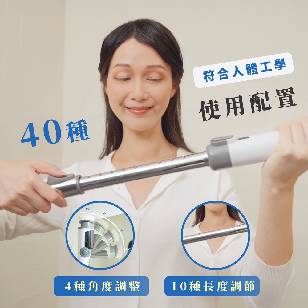 五段轉速 + 40種使用角度,搞定廚房油垢與浴室水垢。